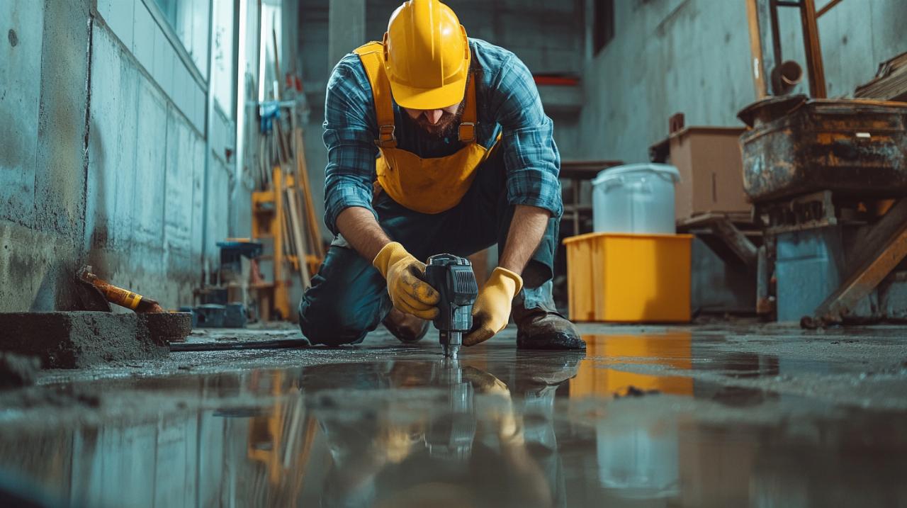 Avant toute intervention sur une dalle, il convient impérativement de couper l'alimentation centrale en eau pour limiter les dégâts en cas de perforation accidentelle d'une canalisation. Le marquage au sol des emplacements détectés des tuyaux permet aux opérateurs de visualiser clairement les zones à éviter. L'utilisation d'outils adaptés comme les perceuses avec limiteur de profondeur réduit les risques de percement involontaire des canalisations situées à faible profondeur. Lorsqu'une fuite est suspectée, plusieurs causes doivent être envisagées: une canalisation percée, un drainage insuffisant, des fissures provoquées par les mouvements du sol ou les variations thermiques, une mauvaise étanchéité de la dalle, l'absence de traitement hydrofuge ou encore de l'eau stagnante due à une inclinaison inadéquate. La compréhension de ces facteurs oriente les mesures correctives appropriées.