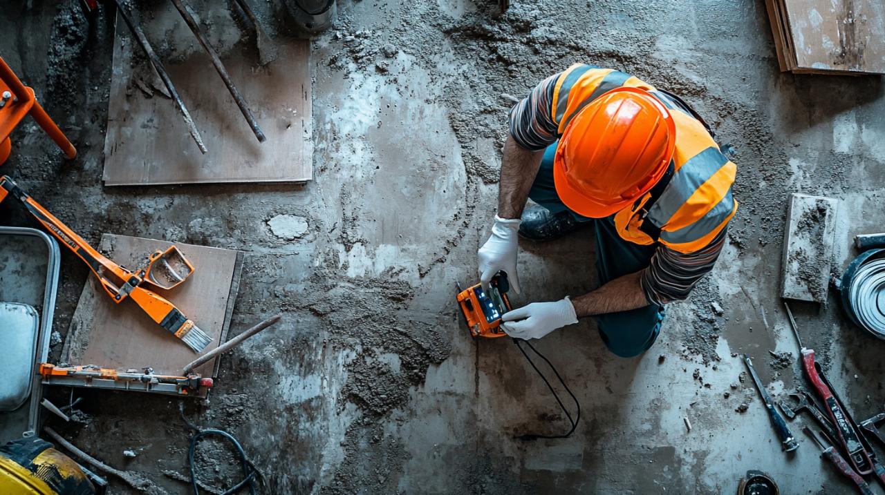 Une fois les canalisations localisées, l'intervention sur une dalle béton exige des précautions rigoureuses pour éviter tout dommage aux installations existantes. La préparation minutieuse du chantier et le respect de protocoles stricts garantissent la sécurité de l'opération et préviennent les complications coûteuses.