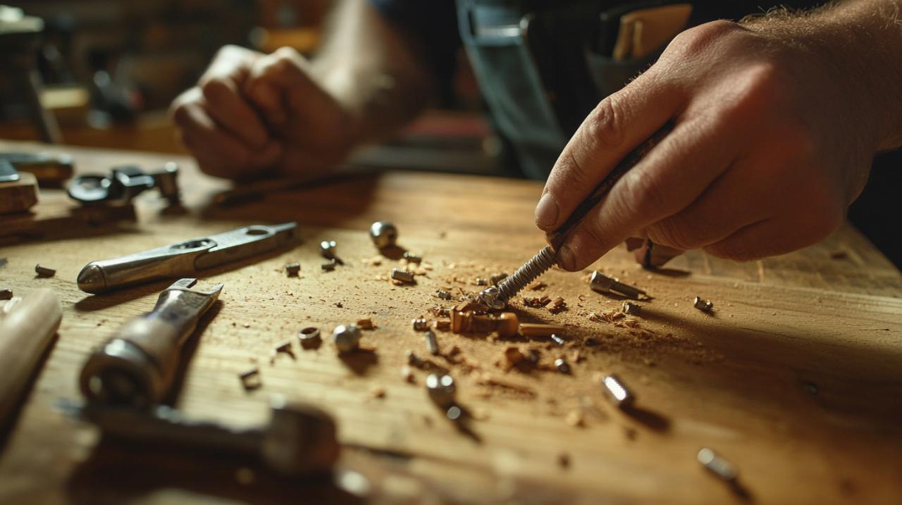 Lorsque le filetage n'est que modérément usé ou que l'assemblage ne supporte pas de contraintes mécaniques importantes, une solution simple et rapide peut suffire. L'insertion d'un élastique en caoutchouc ou d'un morceau de chambre à air dans le trou avant de visser augmente considérablement l'adhérence de la vis. Le caoutchouc se déforme sous la pression et comble les espaces créés par l'usure du filetage, permettant à la vis de retrouver une prise acceptable. Cette méthode ne nécessite aucun outillage spécialisé et peut dépanner efficacement dans de nombreuses situations domestiques. Elle s'avère particulièrement utile pour des fixations de meubles, de poignées de portes ou d'éléments décoratifs qui ne subissent pas de sollicitations mécaniques intenses. Néanmoins, cette approche reste temporaire et ne convient pas aux applications critiques où la sécurité ou la fiabilité sont primordiales. Pour améliorer encore l'efficacité de cette technique, certains bricoleurs utilisent également un tournevis à frapper qui permet d'engager progressivement la vis tout en exerçant une pression axiale constante. L'ajout d'un lubrifiant facilite également la pénétration de la vis et réduit les risques d'agrandir davantage le trou.